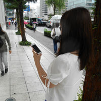 笑顔でスマホの画面を見つめていた女性は、「まだうまくコントロールできないけれど、けっこう楽しいかも」と、歩道のあちらこちらをうろうろ。行き交う外国人観光客らは、歩いたり止まったりするプレーヤーの様子を、けげんそうな顔で見つめていた。