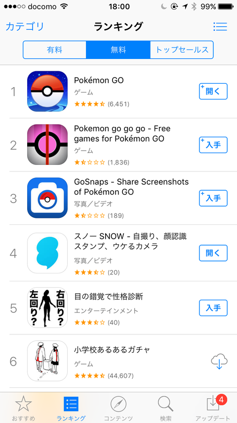 7/22から日本でも配信が始まったポケモンGOだが、ユーザー増加や高負荷に耐えられず、2016年7月22日 18:00 現在、サーバーがダウンしている模様。繋がりにくい状態になっている。 iOSアプリをダウンロードできるApp Storeでは、 配信6時間後に無料総合ランキング1位、セールス総合ランキング8位に浮上している。