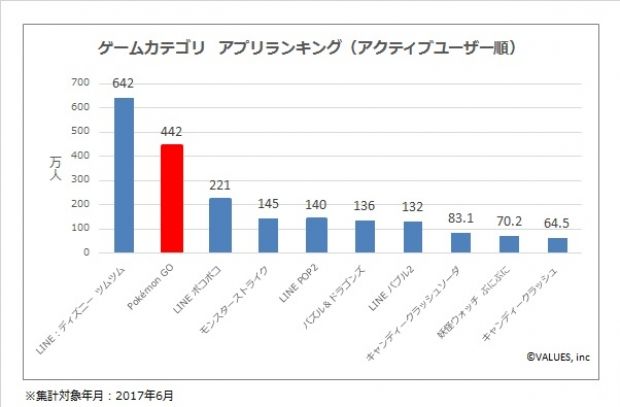 ヴァリューズは、7月14日、ネット行動ログとユーザー属性情報を用いたマーケティング分析サービス「VALUES eMark+」を使用し、「ポケモンGO」の利用動向についての調査結果を発表した。これは、ヴァリューズが保有する全国の行動ログモニター会員の協力により、2016年7月~2017年6月において、スマートフォンアプリ別にデータを集計したとのこと。