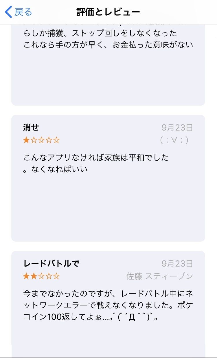 【悲報】AppStoreレビュー民、ポケモンGOに家族の平和を乱される