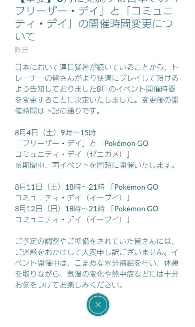 ポケモンあんてな: 【重要】ポケモンGO、8月開催コミュニティ・デイの時間変更のお知らせ。8/4は9時~15時 8/11.12は18時~21時に
