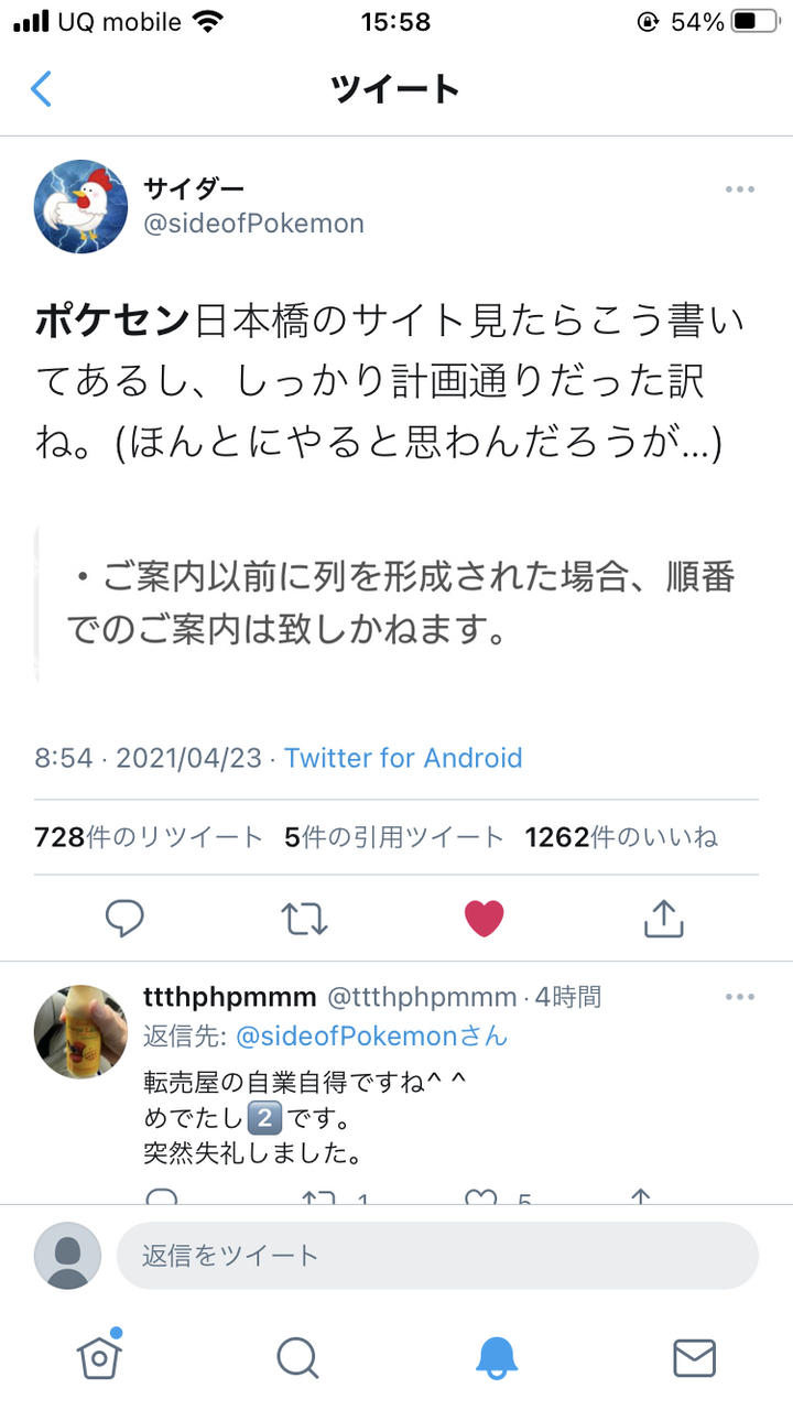 ポケモンセンターさん、転売ヤーが早朝から列を作ってたため、列の最後尾から整理券を配ってしまう