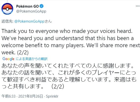 — Pokémon GO (@PokemonGoApp) August 25, 2021